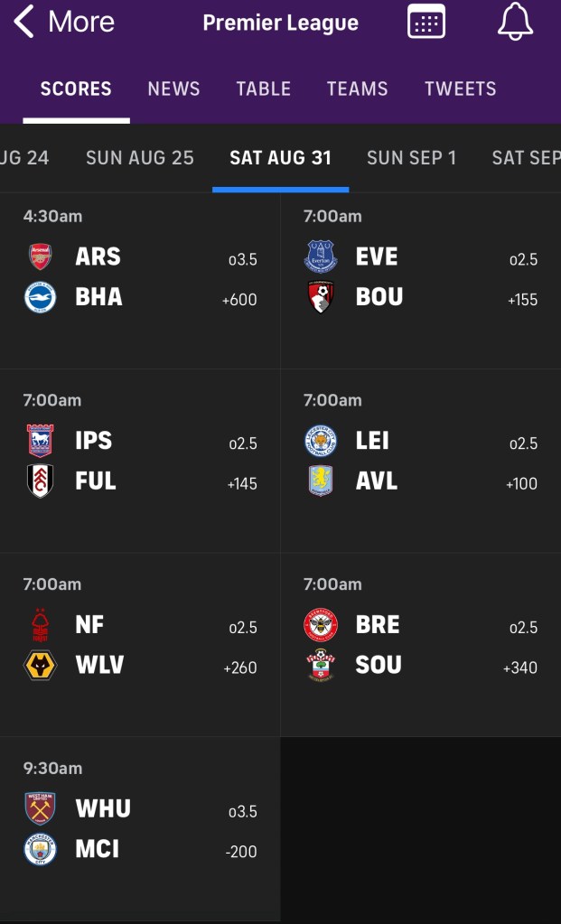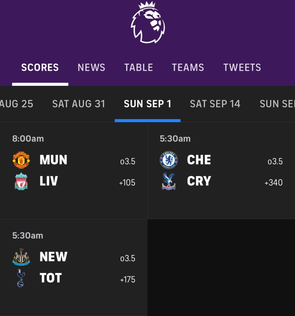 PL MW3 Saturday fixtures via the CBS Sports App