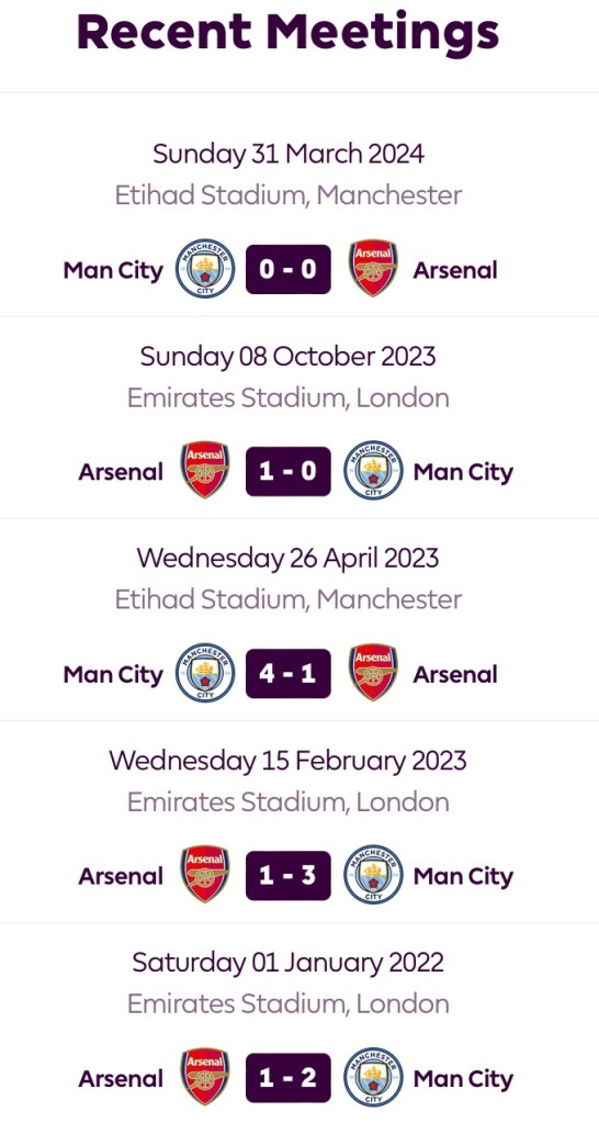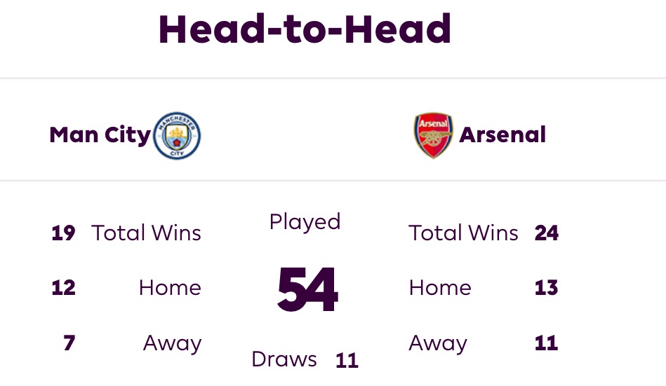 For a comprehensive exploration of the MCIARS fixture from a historical ethos, refer expressly to https://fbref.com/en/stathead/matchup/teams/b8fd03ef/18bb7c10/Manchester-City-vs-Arsenal-History