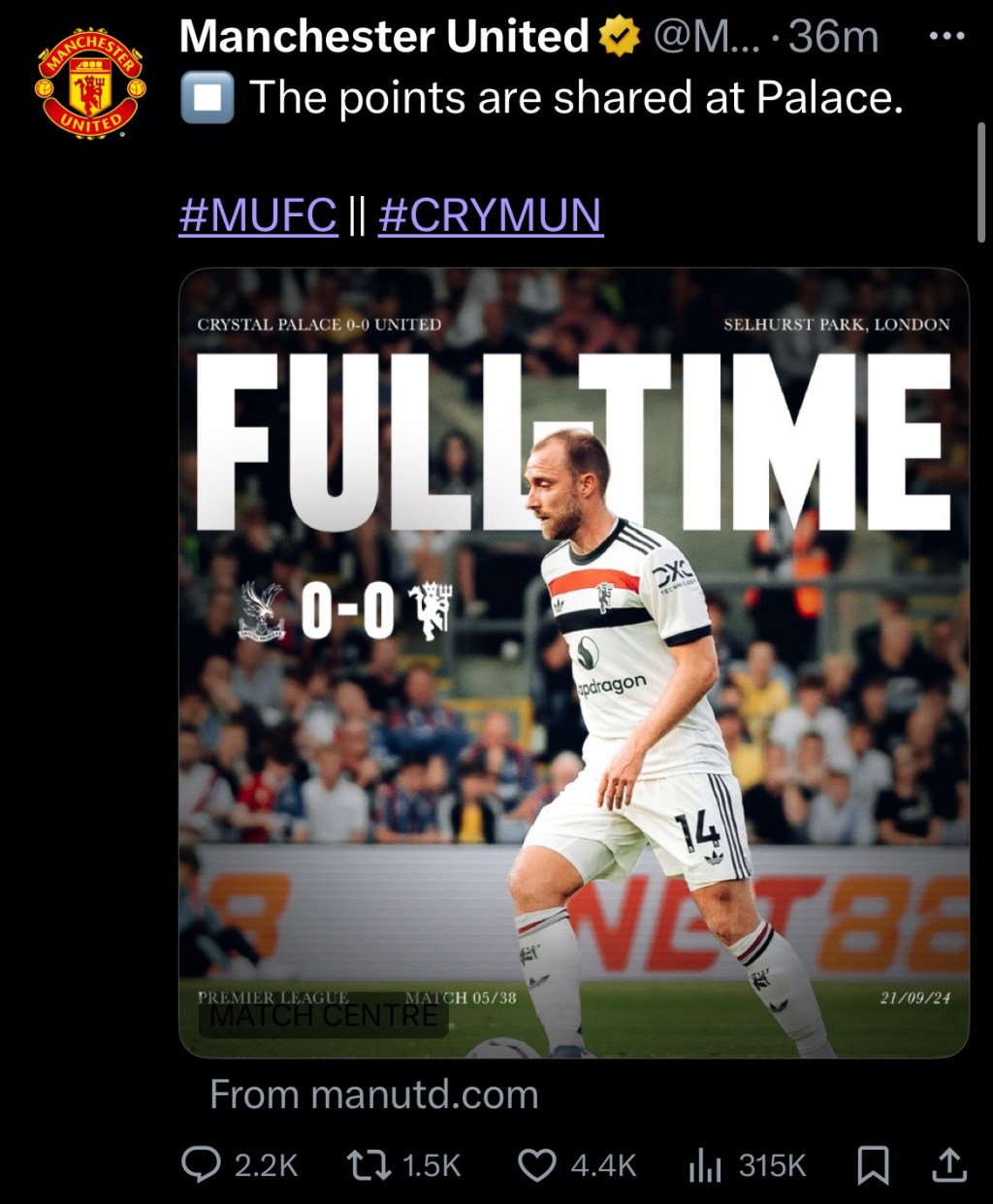 Surely a mixed bag today. On one hand, United defended expertly and earned a point away. On the other, scoring chances were missed and now the club’s goal scoring questions are back in-play whilst acknowledging major set-piece scoring deficiencies. Erik ten Hag and the players have work to do.