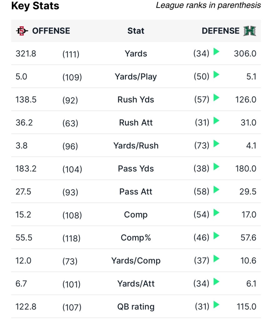 Full disclosure: my initial desire was to play the UNDER at 51.5 but that number is long gone AOTW. So, I’ll try the short road dog instead. This is a play on the Hawaii defense, which is to be recognized and respected. Across the board it bests the SDSU offense. The SDSU OL has had pass-protection issues. I have the better defense, getting points. I’m not much for “Schedule Guy” as the gap in CFB in 2024 between where SDSU is, the FCS and (insert poor FBS school here) is the smallest it has ever been. A play on the Rainbow Warriors it is for me Saturday.