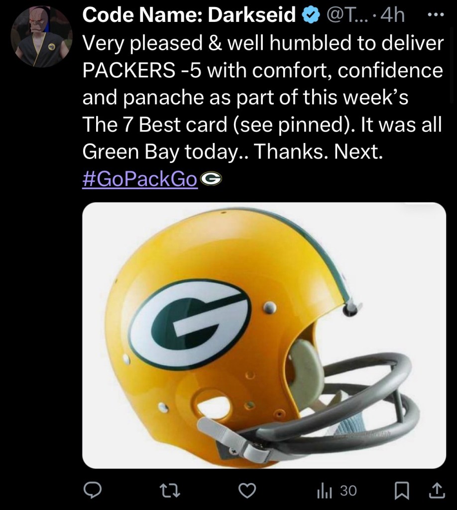 Creator’s Note: The purveyor of Darkseid Sports has no affiliation, whatsoever, with the National Football League, its franchises, its players, social media presence and/or corporate entities associated with the team(s) either in written form or depicted in corresponding images. There is no association with any other person, social media account, media entity, corporate entity, etc. The author of this writing is a third-generation Packers fan, a former credentialed-media member covering the franchise, an amateur historian focused on the franchise and is +EV career betting the franchise lifetime. He is a passionate and very serious Packers and National Football League fan. His next game at Lambeau Field will be his 56th. Go Pack Go.