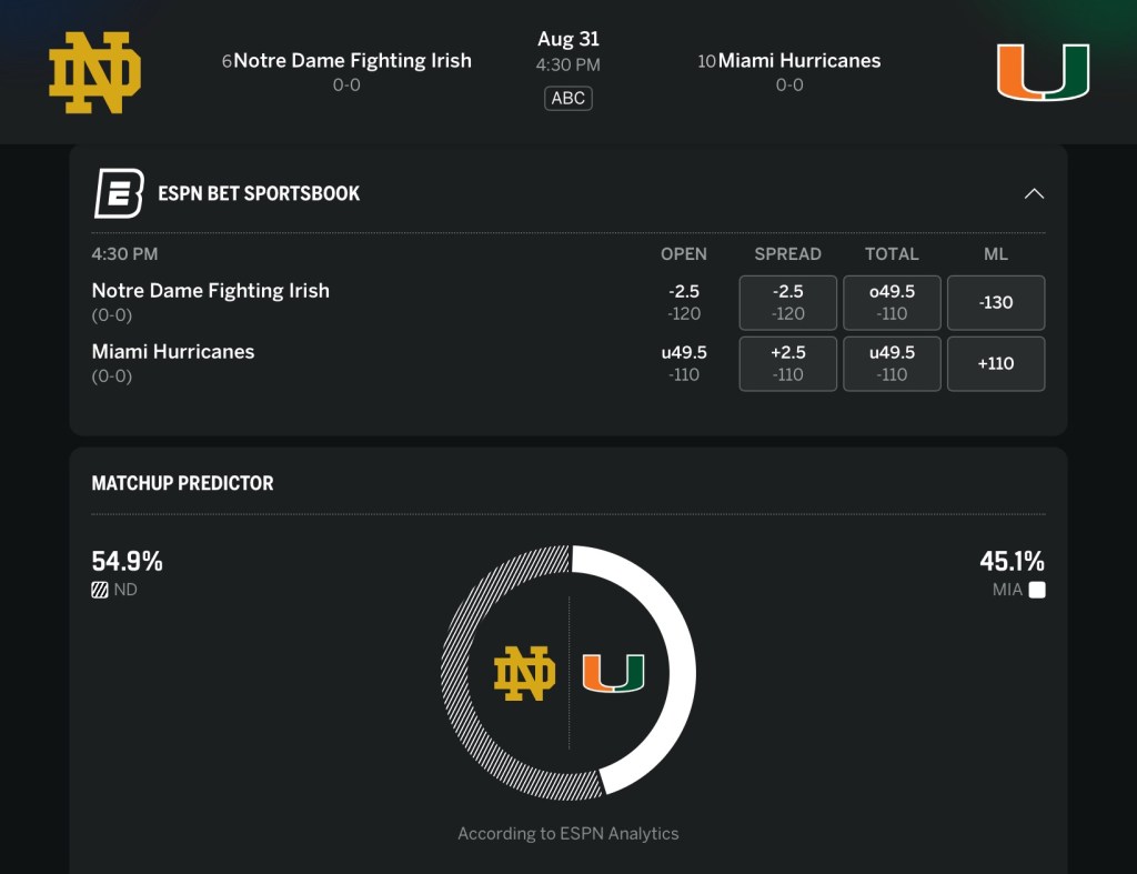 — 232: Notre Dame at MIAMI (+2.5)