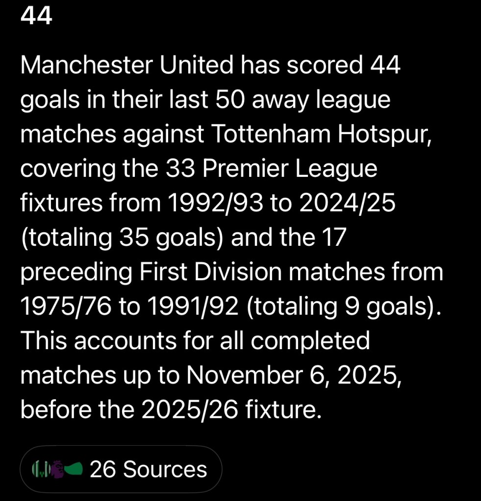 - MUN: 0.88 Goals Per Match L50 league jousts away at Spurs.