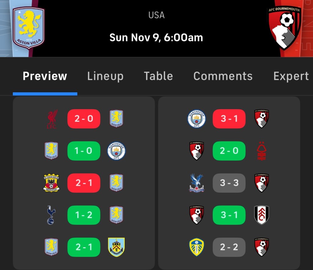 This is a play on the fact I felt citing line value there was a very limited number of contenders for The BTTS Special for MW11. Here we have a rejuvenated (compared to how Villa started the term) AVL side and a consistent, battle-tested BOU outfit.