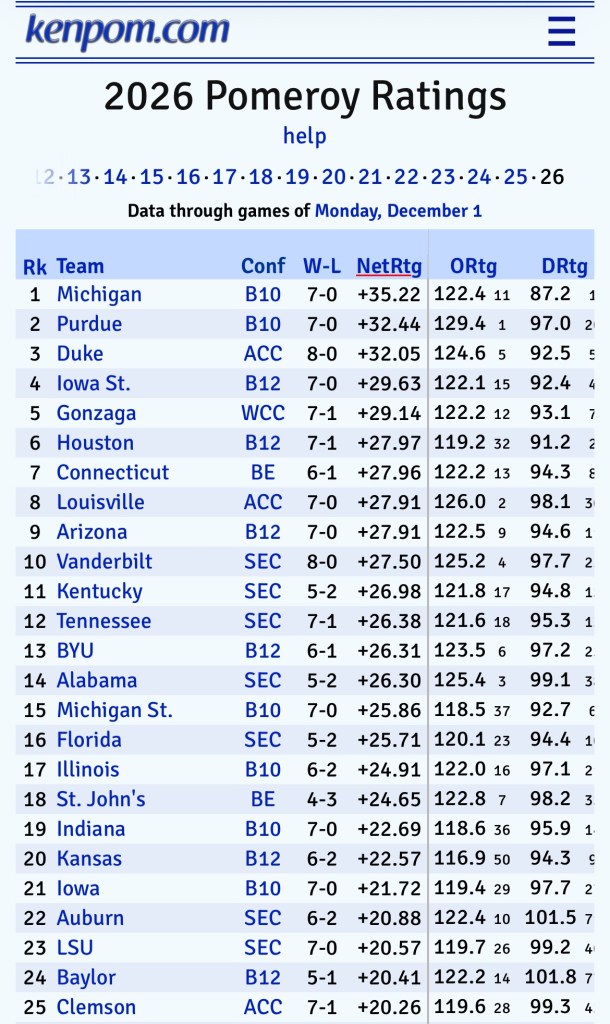 Pretty Straightforward: I’ll move bth the Volunteers and Blue Devils down. I like this one.