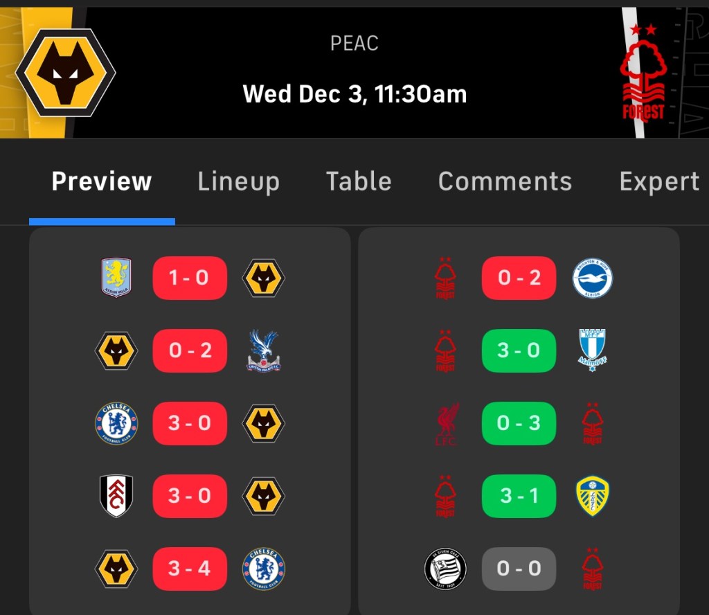 - I see this as a spot where the schedule actually sets up for Forest here. The MW13 fixture vs. BHA was just two days after its Europa League match. With two more days rest here, I think it can refocus here and handle a lesser opponent.