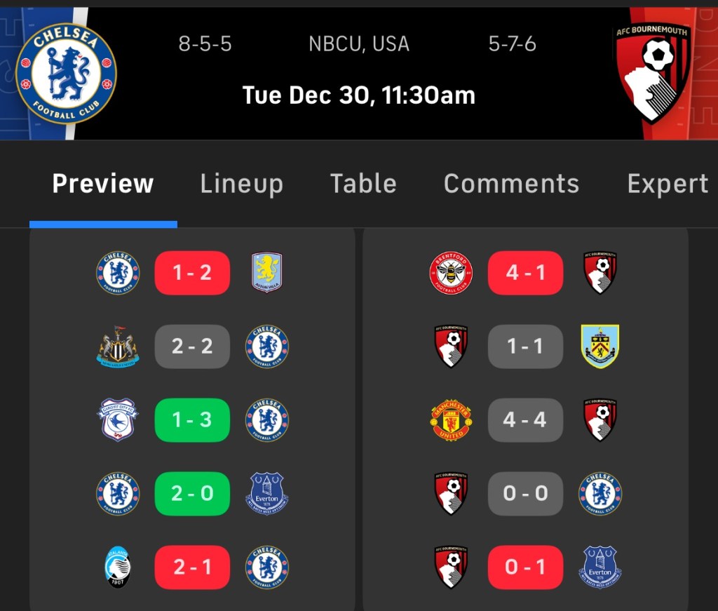 - BOU: One or fewer goals scored in four of last 5 league matches.